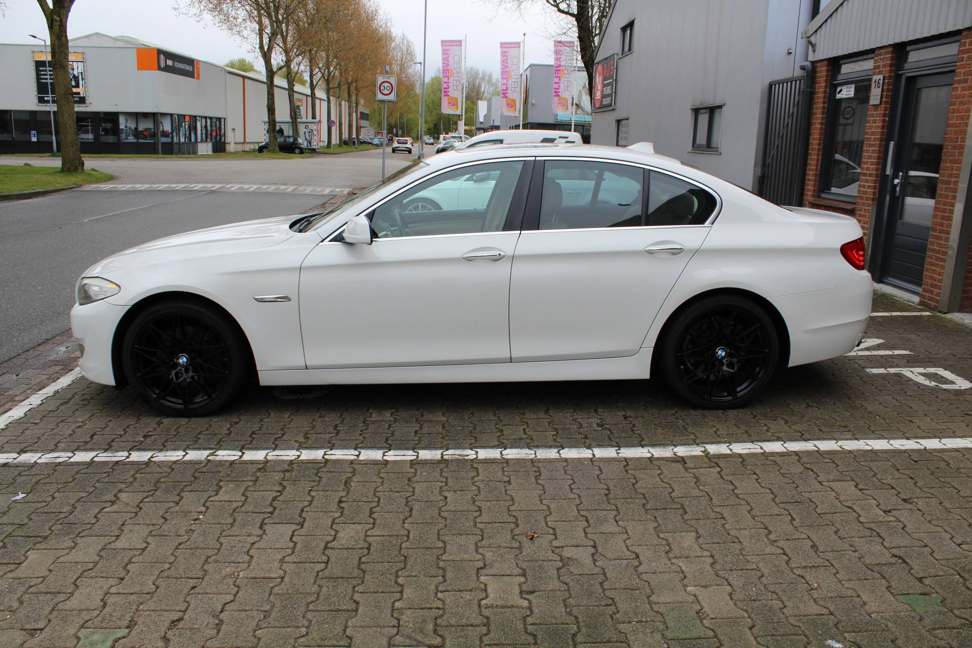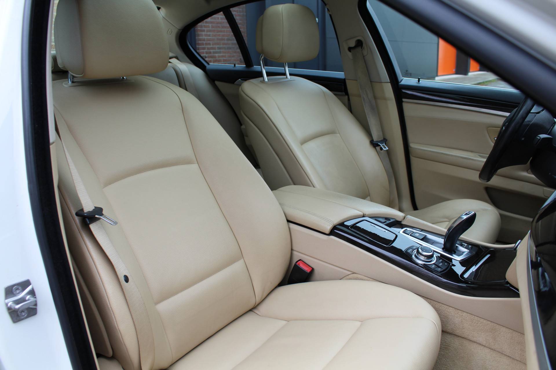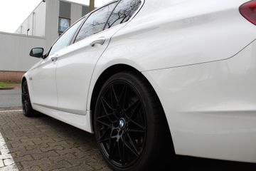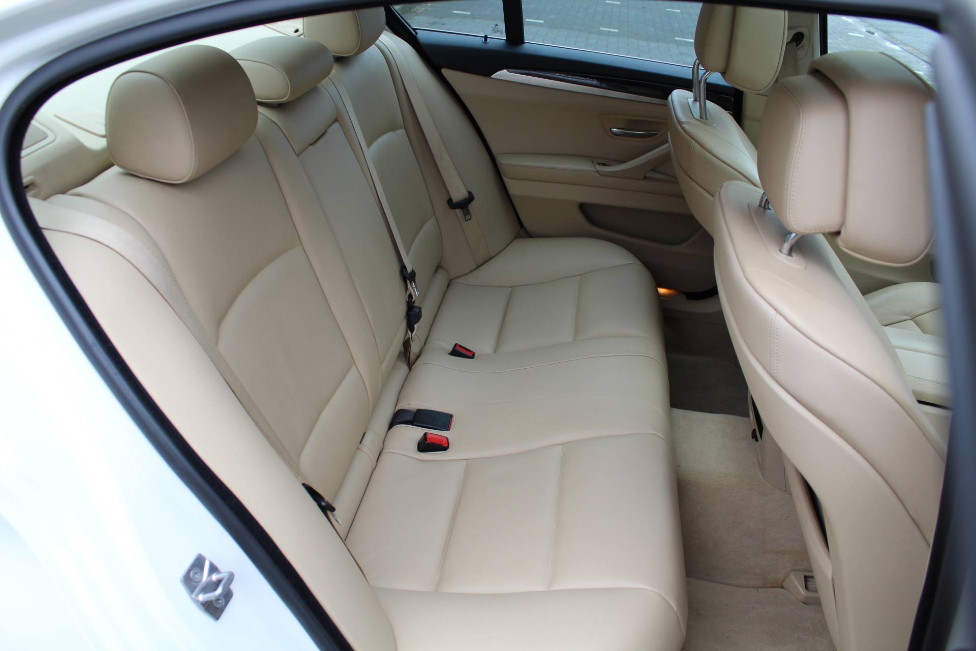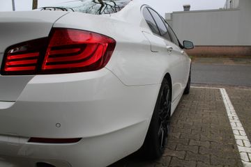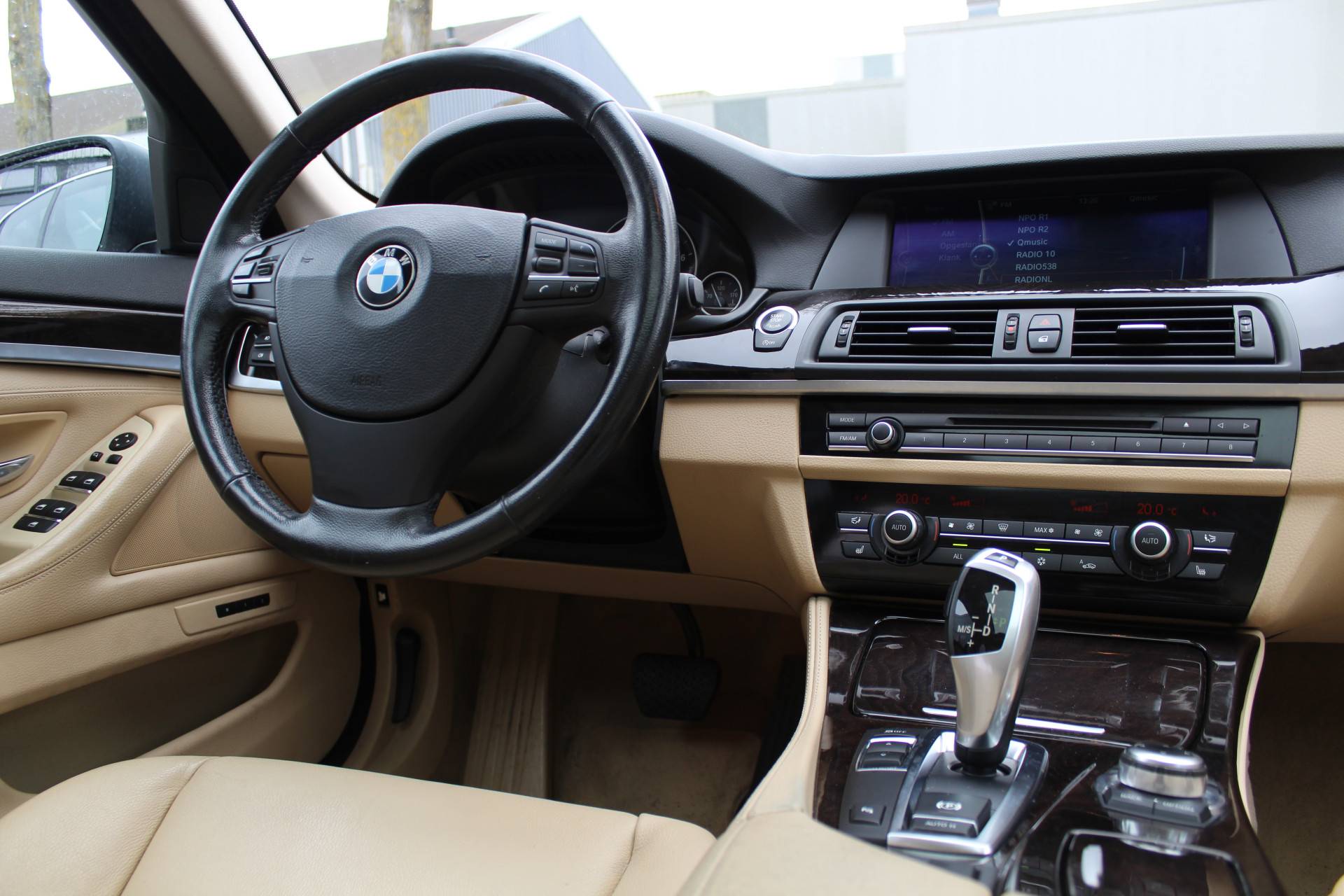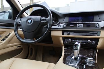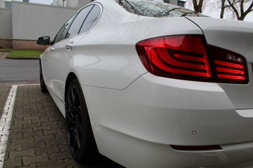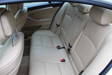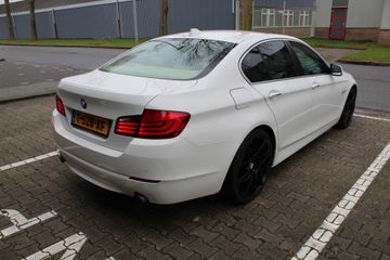 Ontdek de vele kwaliteiten van de BMW 535i. Met zijn tijdloze design, zijn krachtige motor en zijn vele veiligheidssystemen laat deze auto u versteld staan. De aandrijving komt voor rekening van een benzinemotor en een automatische transmissie. Topklasse: daar hoort leren bekleding absoluut bij. Zit u goed? De stoelen zijn eenvoudig instelbaar dankzij de elektrische bediening met geheugen. Het wijdse uitzicht door het glazen panoramadak maakt van elke rit een belevenis. Al is het nog zo fris, koude handen zijn verleden tijd door het verwarmd stuurwiel. Ook LED-dagrijverlichting en getint glas zijn aan boord.